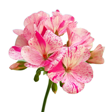 ゼラニウムは、ピンク色の小さくて可愛らしい花をつけますが、香料としてのゼラニウムは花ではなく葉や茎から抽出されます。原産地は南アフリカのケープ地方で、現在は世界中で栽培されています。香りはローズに似ていますが、ローズのような華やかさやふくよかな甘さがあまりなく、力強さや青々しさが感じられるミンティグリーンな香りが特徴です。これはローズの主成分のうちフレッシュでグリーンな香りを特徴付けるCitronellolやGeraniolが含まれているためです。
